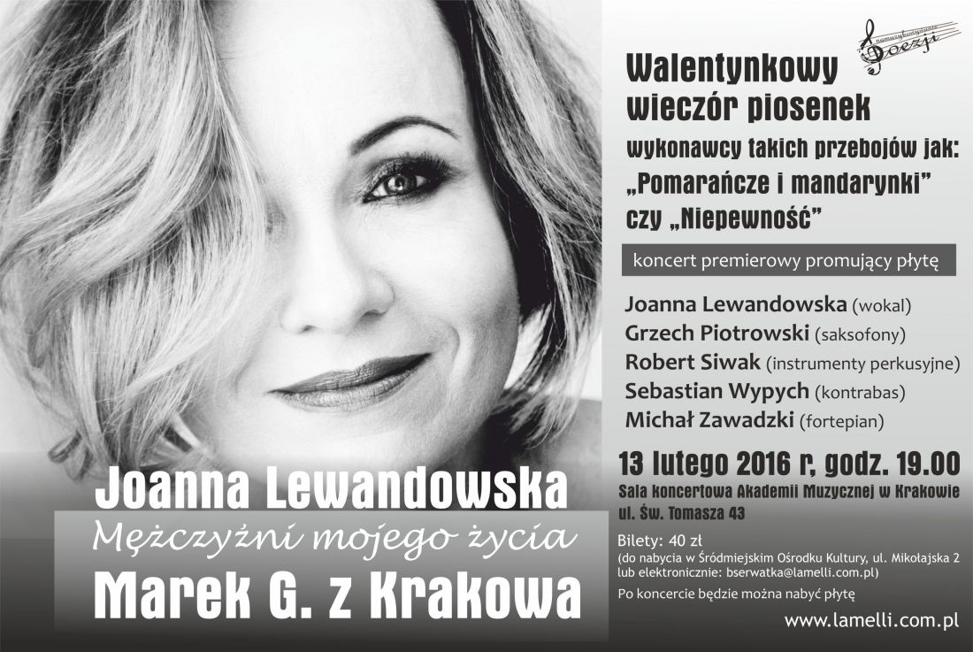 Joanna Lewandowska opowieć o mężczyznach swojego życia rozpoczyna od tego najbliższego jej sercu od Marka Grechuty. Spotkała go za kulisami Studenckiego Festiwalu Piosenki w Krakowie, który wówczas wygrała. Kilka dni po Jego mierci została pierwszš laureatkš stypendium Jego imienia. Dzięki tej nagrodzie mogła wydać swojš debiutanckš płytę. Marek G., Czarodziej z Krakowa, to Dobry Duch Joanny.