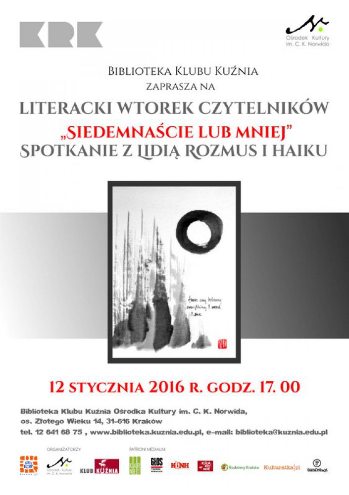 Literacki wtorek czytelników: „Siedemnaœcie lub mniej” Spotkanie z Lidiš Rozmus i haiku