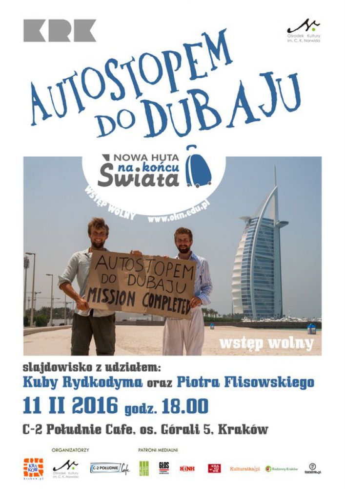 W ramach cyklu Nowa Huta na końcu wiata zapraszamy na slajdowisko z udziałem Kuby Rydkodyma pt. Autostopem do Dubaju.