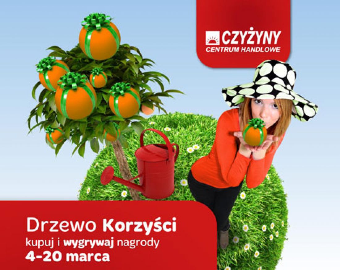 W dniach od 4 do 20 marca Centrum Handlowe Czyżyny zaprasza na wyjštkowš akcję promocyjnš, w ramach której klienci, poprzez specjalnš aplikację www.drzewokorzysci.pl, będš mieli okazję do wielkiego sadzenia i pielęgnowania wirtualnych Drzew Korzyci. Na klientów bioršcych udział w tej innowacyjnej akcji codziennie czekajš cenne nagrody, a w finale aż 10 000 złotych na zakupy w Centrum Handlowym Czyżyny.