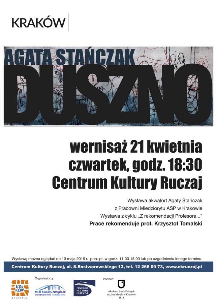 Wystawa akwafort Agaty Stańczak z Pracowni Miedziorytu ASP w Krakowie.