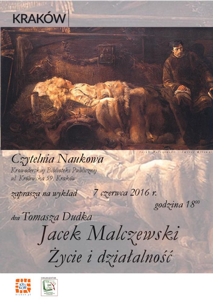 7 czerwca 2016 roku o godzinie 18.00 Czytelnia naukowa Krowoderskiej Biblioteki Publicznej przy ul. Krlewskiej 59 zaprasza na wykad dra Tomasza Dudka "Jacek Malczewski ycie i dziaalno.