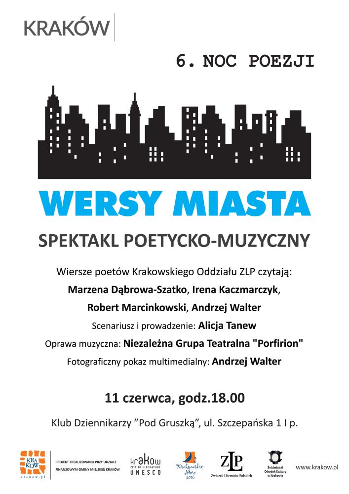 KRAKOWSKA NOC POEZJI "WERSY MIASTA" Spektakl poetycko-muzyczny