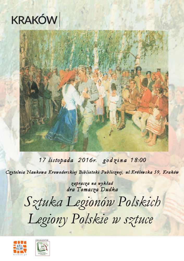 Biblioteka Gwna, Czytelnia naukowa Krowoderskiej Biblioteki Publicznej przy ul. Krlewskiej 59 zaprasza 17 listopada o godzinie 18:00 na wykad dra Tomasza Dudka "Sztuka legionw Polskich. Legiony Polskie w Sztuce".