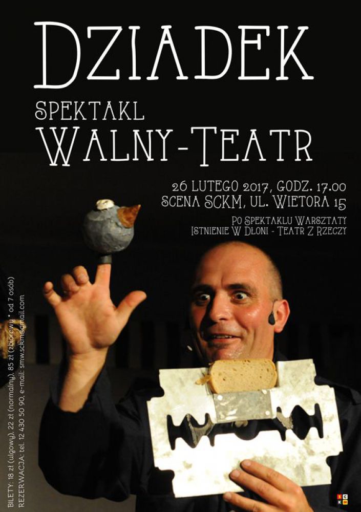 Dziadek to spektakl oparty na autentycznych notatkach dziadka reżysera Adama Walnego, w których radoć z prostych czynnoci życiowych jak zbieranie jabłek, sadzenie truskawek przeplata się z trudnymi dowiadczeniami życia: chorobš, mierciš bliskich. Jest formš retrospekcji: zaczyna się w dniu pogrzebu tytułowego Dziadka, a kończy w dniu narodzin jego wnuka. Przyjań i wzajemne podpatrywanie siebie Dziadka i Wnuka (lalki i lalkarza), stanowiš o dramaturgicznš całego spektaklu. Do opowiedzenia historii życia wykorzystane zostały różne techniki lalkarskich (kukły, marionetki, Pacyny) oraz przedmioty trickowe, które na oczach widza zmieniajš swš funkcję.