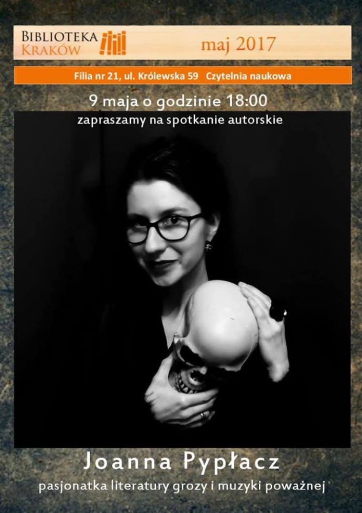 Joanna Pypłacz urodziła się w Krakowie 14 listopada 1982. Z wykształcenia doktor filologii klasycznej, z zamiłowania pasjonatka literatury grozy i muzyki poważnej, na co dzień pracuje w Bibliotece Jagiellońskiej. Jest autorkš licznych prac naukowych, artystycznych przekładów poezji łacińskiej, a także powieœci pt. „August Nacht” (Warszawa 2015), „Krzyk Persefony” (Katowice 2015), oraz „Mechaniczna ćma” (Chorzów 2017).