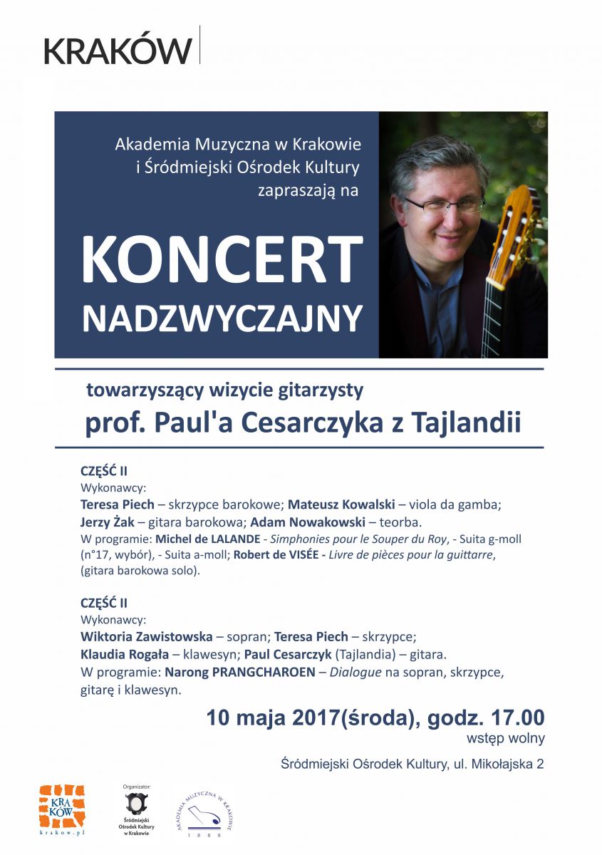 Akademia Muzyczna w Krakowie i ródmiejski Orodek Kultury zapraszajš na Koncert nadzwyczajny towarzyszšcy wizycie gitarzysty, prof. Paul'a Cesarczyka z Tajlandii.