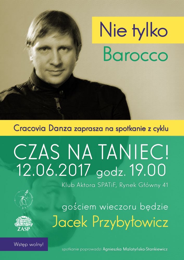 Jacek Przybyłowicz, tancerz, choreograf znany i podziwiany, artysta, którego spektakle regularnie pojawiajš się na wielu zagranicznych festiwalach tańca m.in. we Włoszech, Francji, Cyprze, Niemczech, Czechach, Rumunii, Szwecji, Danii, Norwegii, Hiszpanii, Węgrzech, Chinach, USA. Tunezji, Rosji, Ukrainie; będzie gociem spotkania CZAS NA TANIEC!, cyklu Cracovia Danza. Spotkanie odbędzie się 12 czerwca o godz.19 w Krakowie w Klubie Aktora SPATiF, Rynek Główny 41.