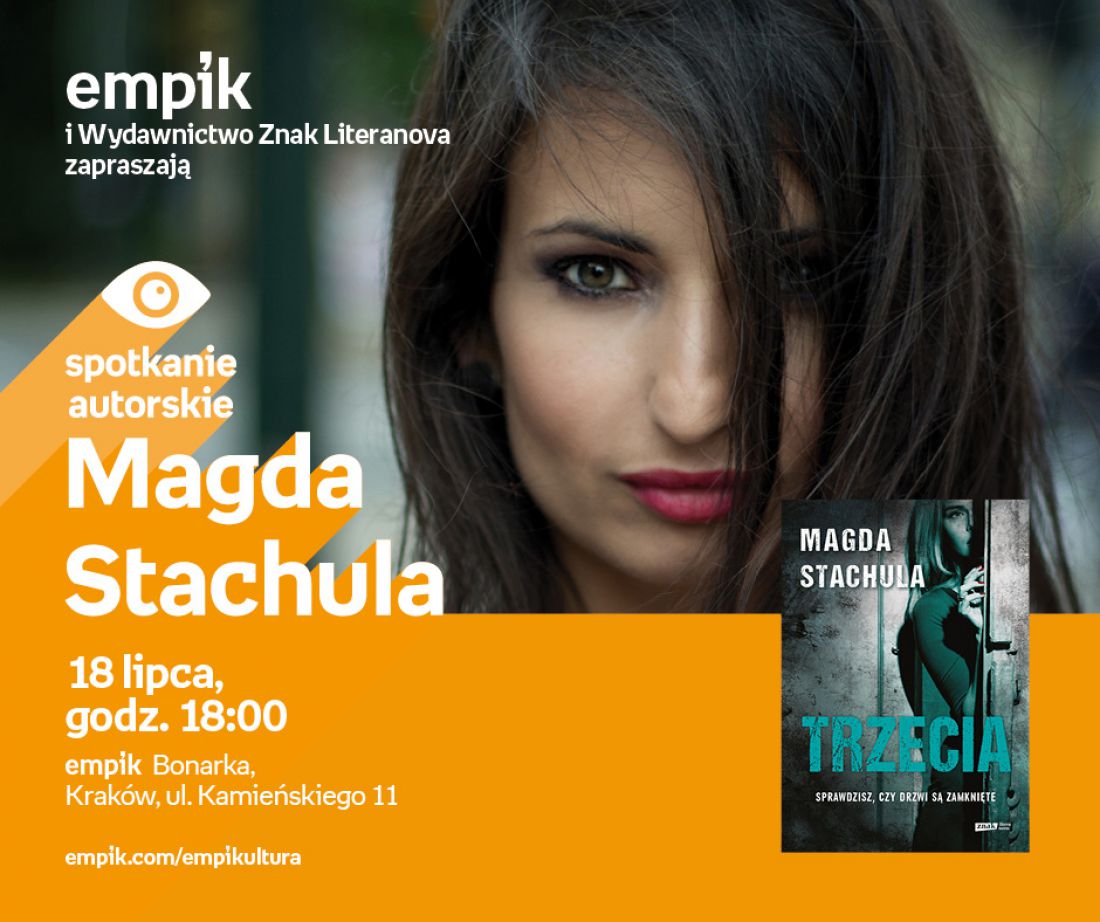 Magda Stachula, autorka jednego z najlepiej sprzedajšcych się debiutów kryminalnych ostatnich lat, wraca z nowš historiš. Autorka thrillerów psychologicznych zadebiutowała powieciš Idealna, która odniosła duży sukces i stała się jednym z najgłoniejszych debiutów w 2016 roku . Trzecia (Znak Literanova) to najnowsza ksišżka w dorobku krakowskiej Autorki. Akcja rozgrywa się głównie w scenerii Krakowa, przeplatajšc losy trójki bohaterów. Na premierowe spotkanie z Magdš Stachulš zapraszamy do krakowskiego salonu empik Bonarka.