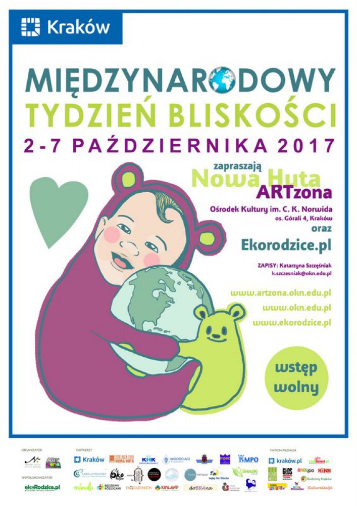 Zapraszamy wszystkich rodziców i ich dzieci na cykl bezpłatnych warsztatów, które zostały zorganizowane z okazji obchodów Międzynarodowego Tygodnia Bliskoci. Akcja trwać będzie od 2-7 padziernika 2017 r. Warsztaty i spotkania sš bezpłatne. Na wszystkie zajęcia obowišzujš zapisy. Spotkania w ARTzonie Orodek Kultury im. C. K. Norwida, os. Górali 4, Kraków.