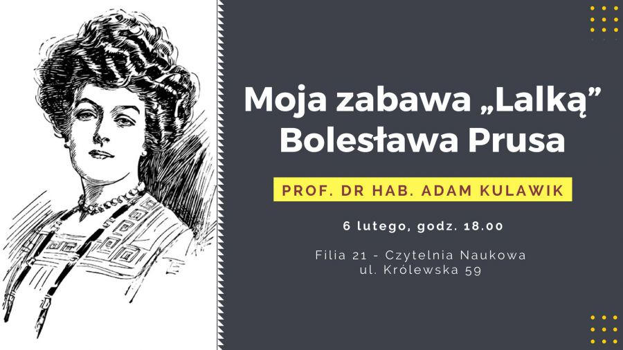 Zapraszamy na wykad prof. dra hab. Adama Kulawika-nauczyciela akademickiego, teoretyka literatury i autora publikacji naukowych z zakresu poetyki. Tematem spotkania bdzie Lalka Bolesawa Prusa.