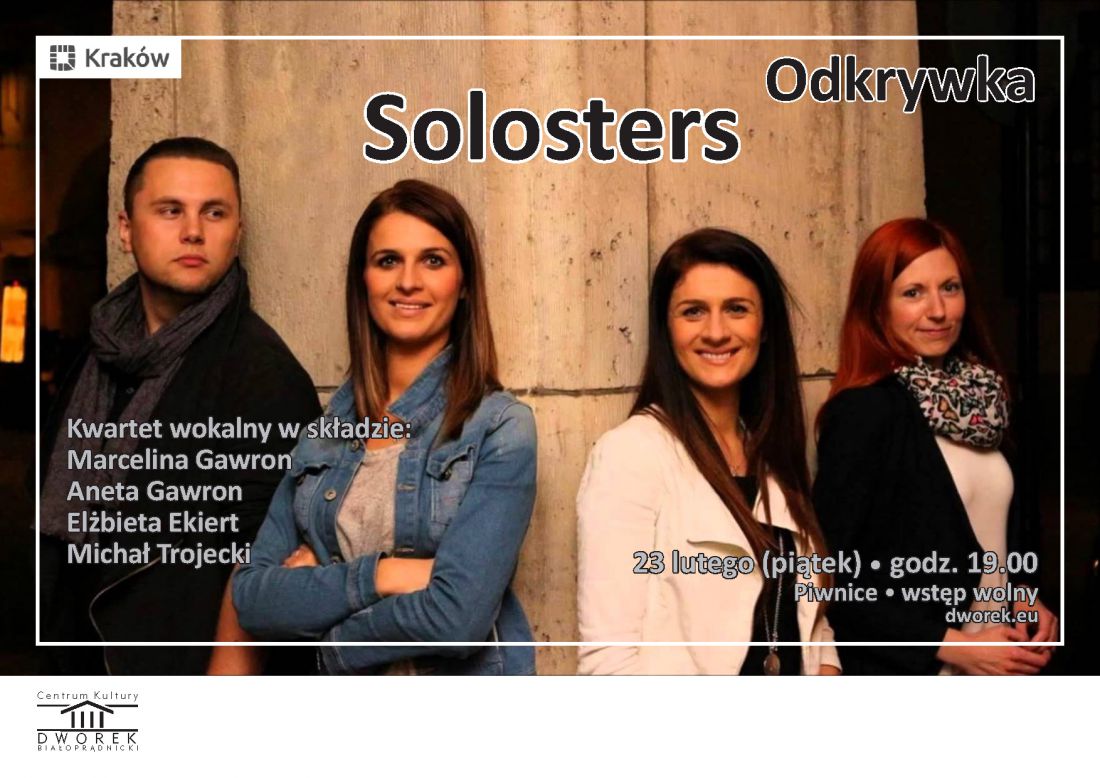 Tym razem w ramach Odkrywki w Dworku Białopršdnickim zagra dla Was kwartet wokalny, wykonujšcy utwory a'capella. To pasjonaci współbrzmień harmonicznych i wykorzystywania możliwoci głosu.