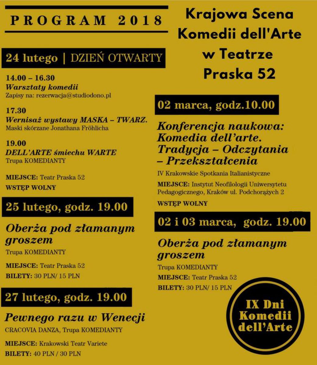 PROGRAM IX DNI KOMEDII DELL’ARTE KRAKÓW 2018 (24.02 - 03.03)