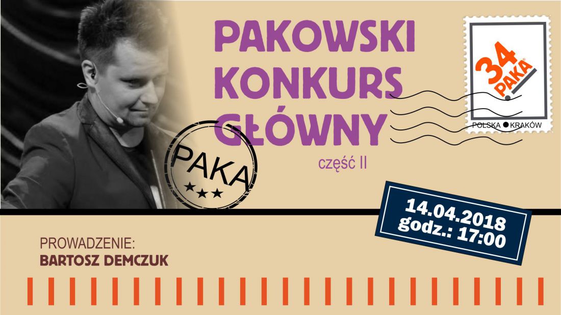 Konkurs Główny to ostatni, decydujšcy etap 34. Przeglšdu Kabaretów PAKA. Dla uczestników to już ostatnia prosta w drodze do kabaretowej kariery. Ponownie muszš zaprezentować się z jak najlepszej strony przed publicznociš i jurorami. To podczas tych dwóch wieczorów, Jury Główne wybierze zwycięzców. Zgromadzona publicznoć również będzie mogła dorzucić swoje 3 grosze, ponieważ każdy widz ma przywilej oddania jednego głosu na artystę, który- według niego- wypadł najlepiej.