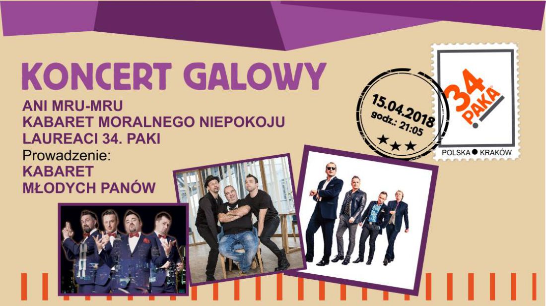 Występujš Przodownicy Kabaretu: Laureaci 34.PAKI; Kabaret Ani Mru-Mru; Kabaret Moralnego Niepokoju; Robert Korólczyk The Jobers