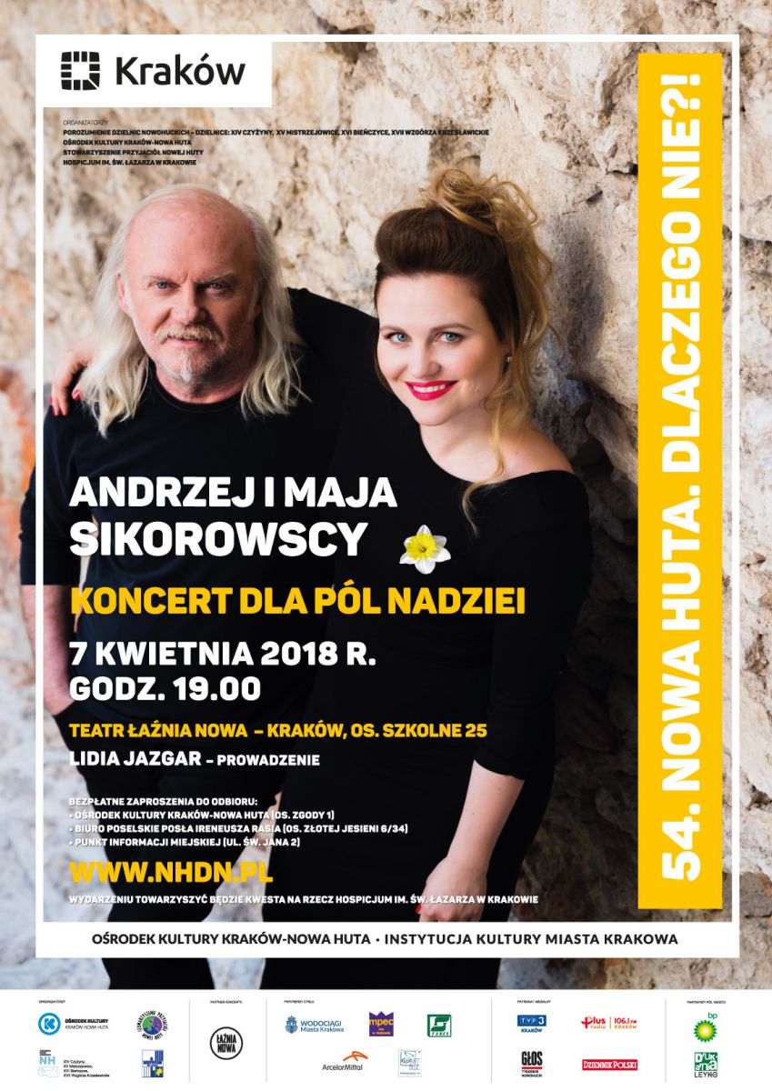 Wiosenny koncert z cyklu Nowa Huta. Dlaczego Nie?!, tradycyjnie już dedykowany Polom Nadziei, odbędzie się 7 kwietnia 2018 o godz. 19.00 w Teatrze Łania Nowa. Na nowohuckiej scenie wystšpiš artyci, nierozerwalnie zwišzani z Krakowem Andrzej i Maja Sikorowscy z zespołem. Wydarzenie poprowadzi dyrektor artystyczna cyklu Lidia Jazgar.
