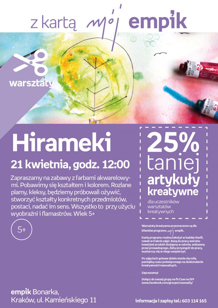 Zapraszamy na zabawy z farbami akwarelowymi. Pobawimy się kształtem i kolorem. Rozlane plamy, kleksy, będziemy próbowali ożywić, stworzyć kształty konkretnych przedmiotów, postaci, nadać im sens. Wszystko to przy użyciu wyobraŸni i flamastrów. Wiek: 5+. Zapisy pod nr. 603 114 165