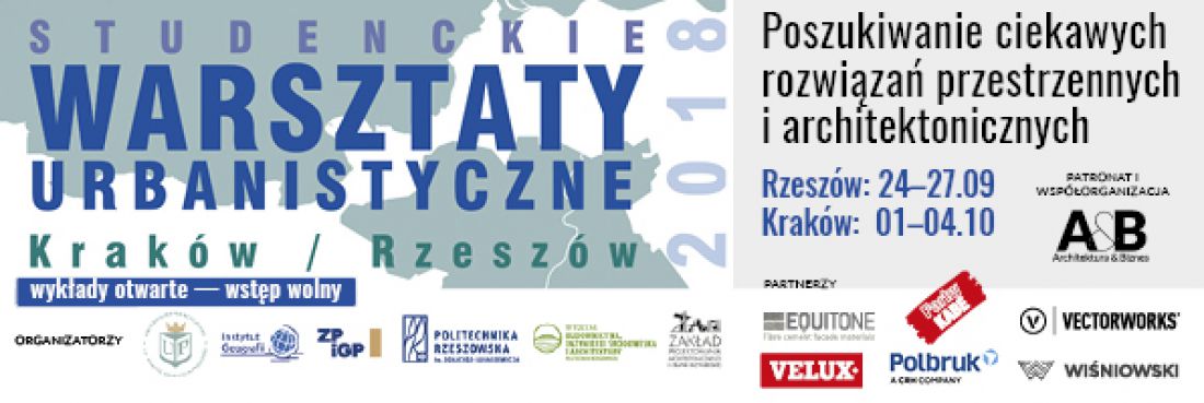 Warsztaty odbędš się we wrzeniu w Rzeszowie (4 dni, 24-27.09.2018) i w padzierniku w Krakowie (4 dni, 1-4.10.2018). Wstęp jest otwarty dla wszystkich studentów architektury i darmowy.
