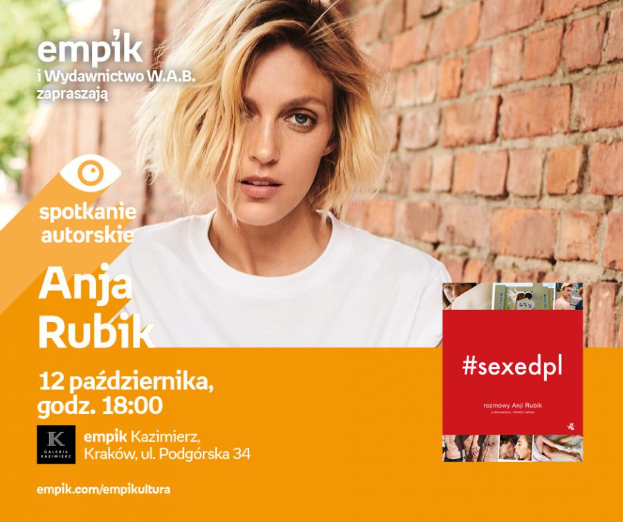 Osiemnacie rozmów. Ogrom merytorycznej wiedzy. Zero pruderii. I jedna postać, rozpoznawalna na całym wiecie: Anja Rubik. Odważna i przełomowa kampania #SEXEDPL kilka miesięcy temu podbiła polski internet. Teraz pora na sygnowanš nazwiskiem top modelki ksišżkę skierowanš do młodych ludzi. Na jej potrzeby Rubik przeprowadziła rozmowy z kilkunastoma ekspertkami i ekspertami, których otwarcie pyta o wszystko, co w polskim społeczeństwie często kategoryzowane jest jako tabu. Ksišżkę #sexedpl. Rozmowy Anji Rubik o dojrzewaniu, miłoci i seksie (Wydawnictwo W.A.B.) wyróżnia też wyjštkowa oprawa wizualna. Komiksy znanej w sieci jako Kiciputek Katarzyny Babis i fotografie Zuzy Krajewskiej dodajš całoci dynamiki, lekkoci i elegancji. Całoć przygotowała z młodymi ludmi. Chwilę po premierze ksišżki rusza w trasę by porozmawiać z publicznociš o tej niezwykłej publikacji. Zapraszamy na spotkania.