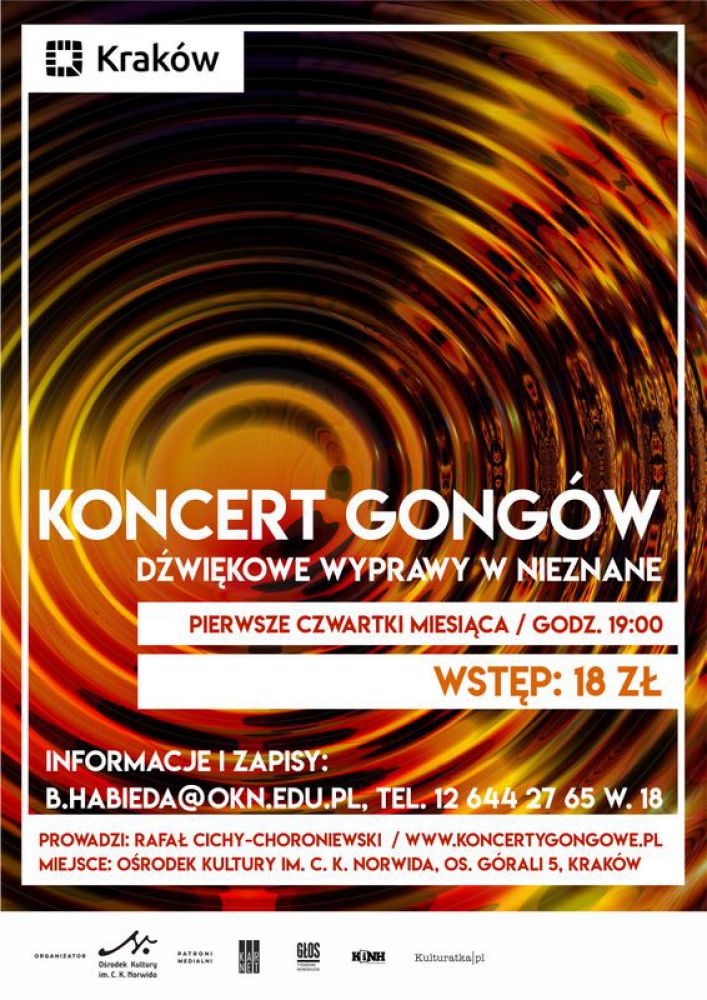 Relaks dla ciała i radoć dla duszy to w jednym zdaniu cel udziału w koncercie gongowym. Wrażenia dostarczane słuchaczom przez dwięki gongu sš jedyne w swoim rodzaju, niepowtarzalne i nieporównywalne z niczym innym. Prowadzi Rafał Cichy-Choroniewski / www.koncertygongowe.pl.