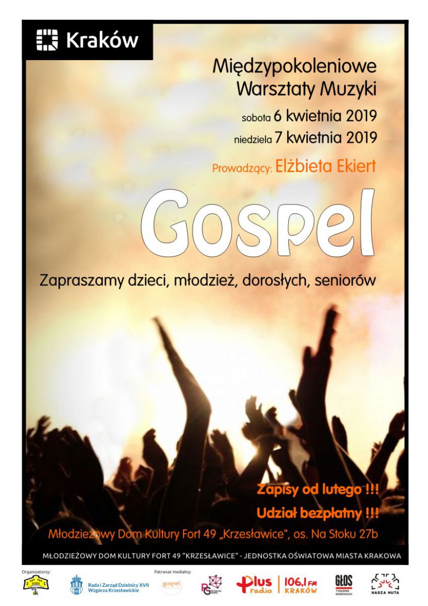 Zapraszamy dzieci, młodzież, dorosłych oraz seniorów do uczestnictwa w warsztatach gospel, które zakończš się koncertem finałowym z udziałem uczestników i profesjonalnych muzyków. Warsztaty będš dobrš okazja do wspólnego, międzypokoleniowego piewania na chwałę Pana.