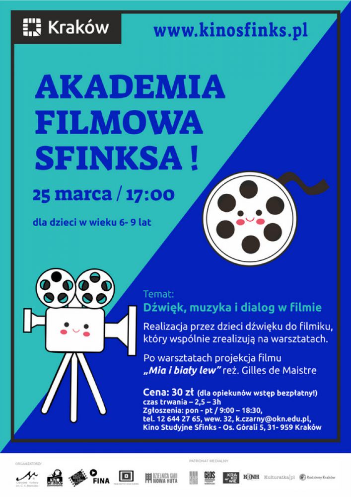 Akademia Filmowa Sfinksa zaprasza 25 marca o godz.17.00 na warsztaty filmowe pt. Dwięk, muzyka i dialog w filmie oraz projekcja filmu Mia i biały lew reż. Gilles de Maistre.