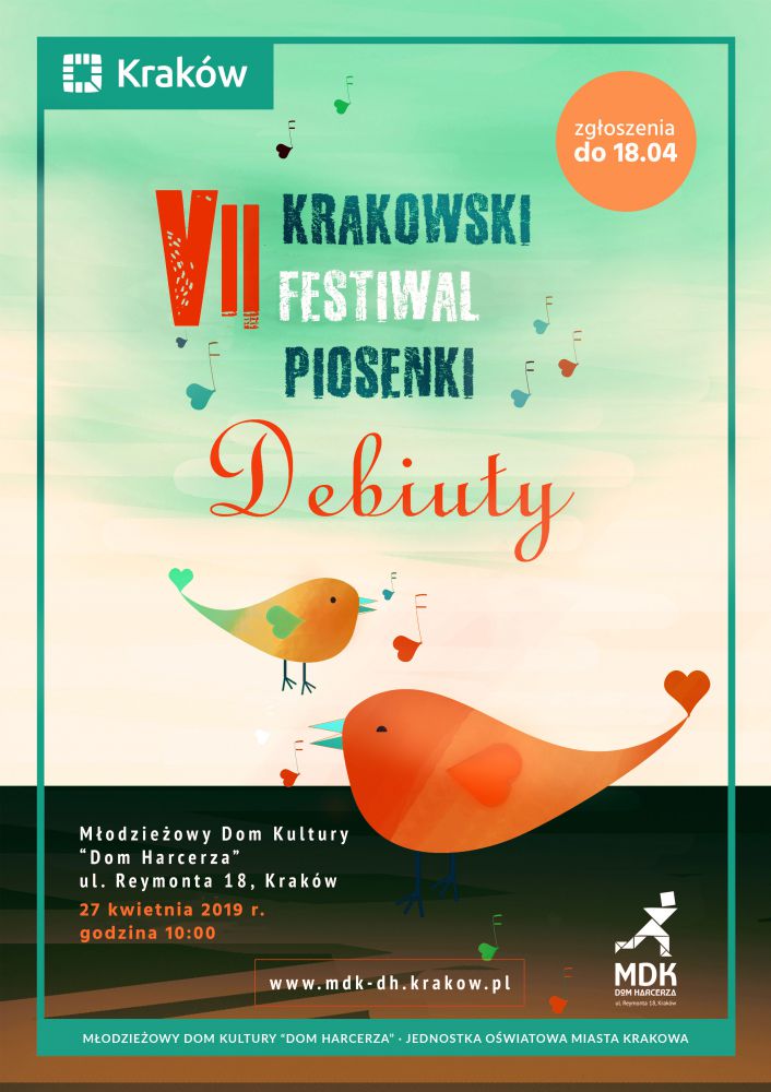 Organizatorem VII KRAKOWSKIEGO FESTIWALU PIOSENKI Debiuty jest Młodzieżowy Dom Kultury DOM HARCERZA w Krakowie ul. Reymonta 18.