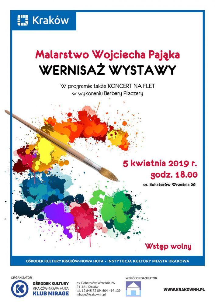 Klub Mirage Orodka Kultury Kraków-Nowa Huta (os. Bohaterów Wrzenia 26) zaprasza 5 kwietnia o godz. 18.00 na wernisaż wystawy malarstwa Wojciecha Pajška. W ramach Galerii M Plus zaprezentowane zostanš akwarele przedstawiajšce głównie pejzaże i architekturę. Wernisaż wystawy uwietni koncert na flet w wykonaniu Barbary Pieczary.