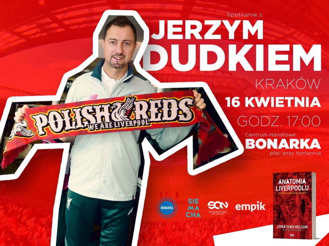 Jerzy Dudek, były reprezentant Polski, zawodnik Liverpoolu i Realu Madryt, spotka się z kibicami już 16 kwietnia o godz. 17:00 na placu przy fontannie w Bonarce. Piłkarz opowie o wygranym finale Ligi Mistrzów w 2005 roku i kulisach transferu do drużyny Królewskich. Spotkanie jest organizowane przy okazji polskiej premiery ksišżki Anatomia Liverpoolu. Historia w dziesięciu meczach.