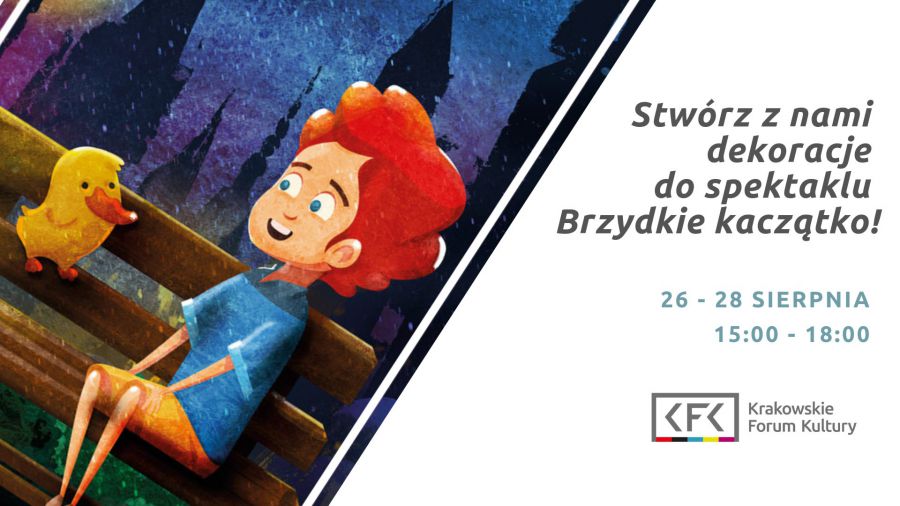 Zapraszamy na bezpłatne warsztaty plastyczne, na których tworzona będzie scenografia do spektaklu baletowego Brzydkie Kaczštko, którego premiera odbędzie się 15 wrzenia na dużej scenie w Nowohuckim Centrum Kultury.