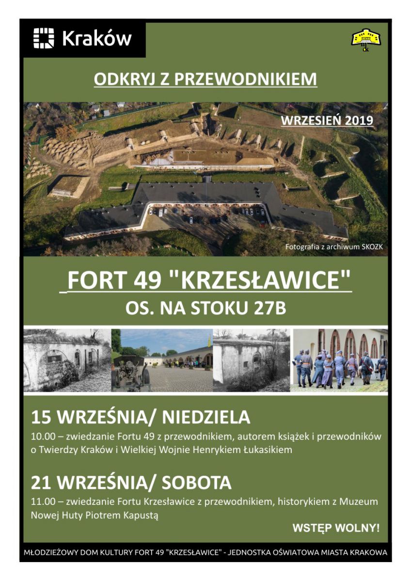 W dniach 15 i 21 wrzenia nadarzy się wyjštkowa okazja do zwiedzenia Fortu 49 Krzesławice na os. Na Stoku 27b. Zwiedzanie odbędzie się w ramach Europejskich Dni Dziedzictwa i Zajrzyj do Huty.