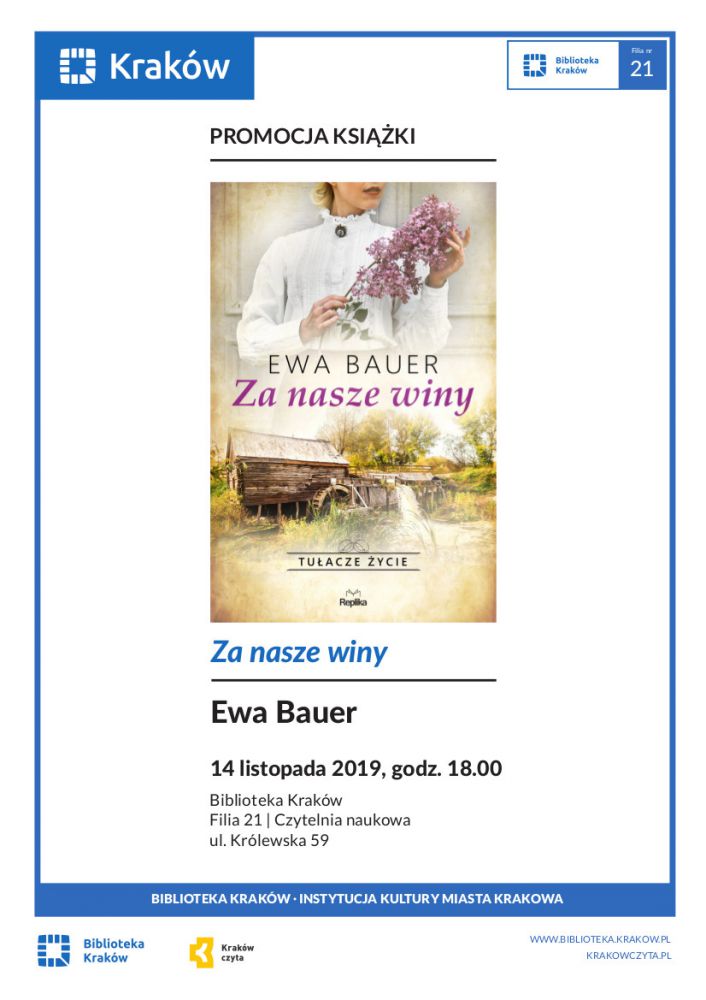 Spotkanie autorskie z Ewš Bauer oraz promocja najnowszej powieci Za nasze winy
