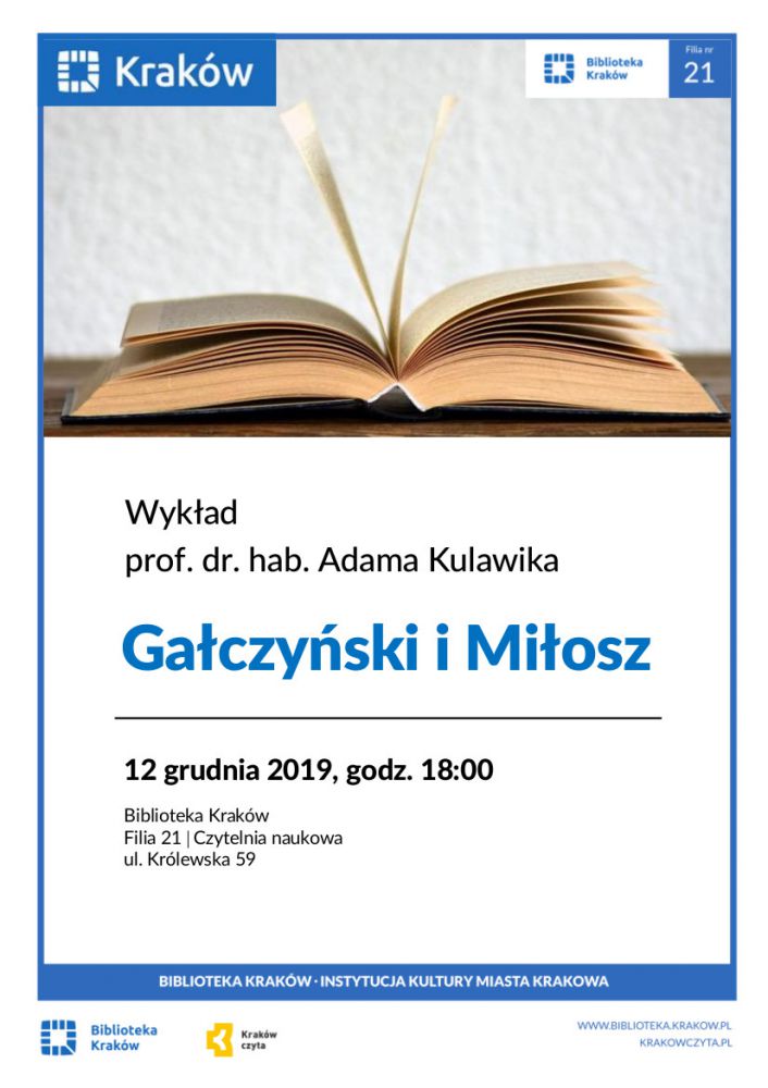 Wykad prof. dr. hab. Adama Kulawika prezentujcy nowe spojrzenie na twrczo Konstantego Ildefonsa Gaczyskiego i Czesawa Miosza.