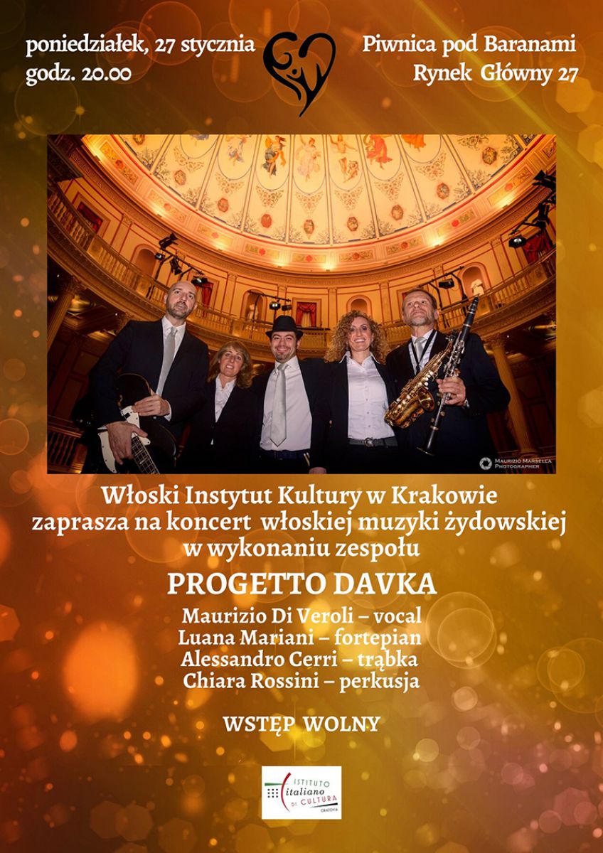 Woski Instytut Kultury w Krakowie zaprasza na koncert woskiej muzyki hebrajskiej w wykonaniu zespou PROGETTO DAVKA