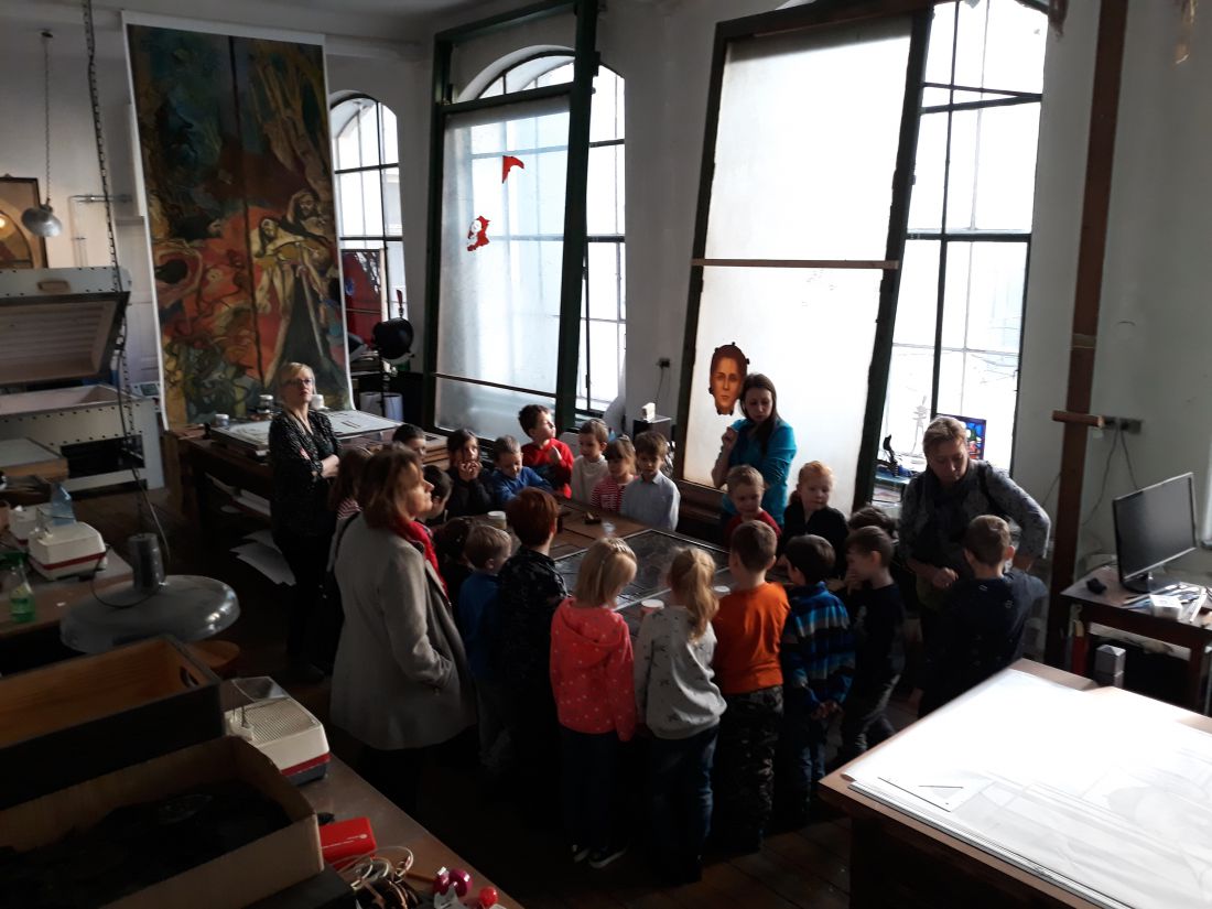 Dzieci zapoznajš się z takimi pojęciami jak żywe muzeum, warsztat, witraż. W trakcie zwiedzania obserwujš mistrzów witrażowych podczas pracy, mogš wzišć do ręki narzędzia i pędzle oraz pomalować na próbę element witrażu. Po zwiedzaniu zapraszamy dzieci na warsztaty.