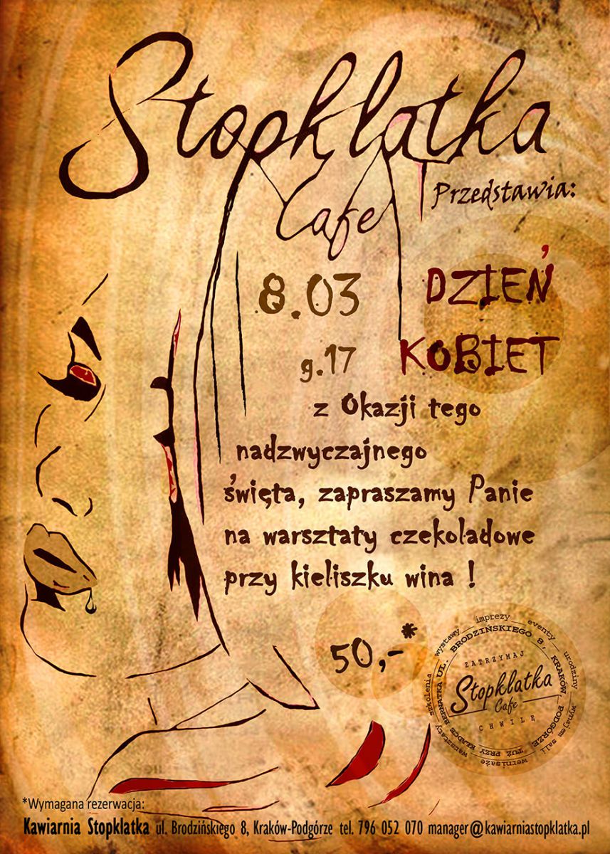 Wymagana rezerwacja miejsc: manager@kawiarniastopklatka.pl,