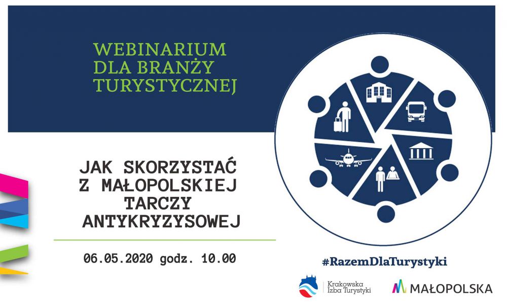 Departament Turystyki i Sportu Urzędu Marszałkowskiego Województwa Małopolskiego oraz Krakowska Izba Turystyki serdecznie zapraszajš na webinarium dla branży turystycznej Jak skorzystać z Małopolskiej Tarczy Antykryzysowej, które odbędzie się 6 maja 2020 r. o godz. 10:00.