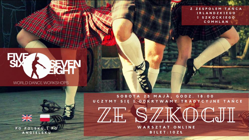 During the next online workshop "Five Six Seven Eight" we will learn traditional Scottish dances. The core of the workshop will be not only learning steps, but also have fun. The classes will be conducted by Małgorzata Majewska from the Irish and Scottish Dance Ensemble - Comhlan. We will meet on May 23rd at 7 pm. Price - 10 zł.
