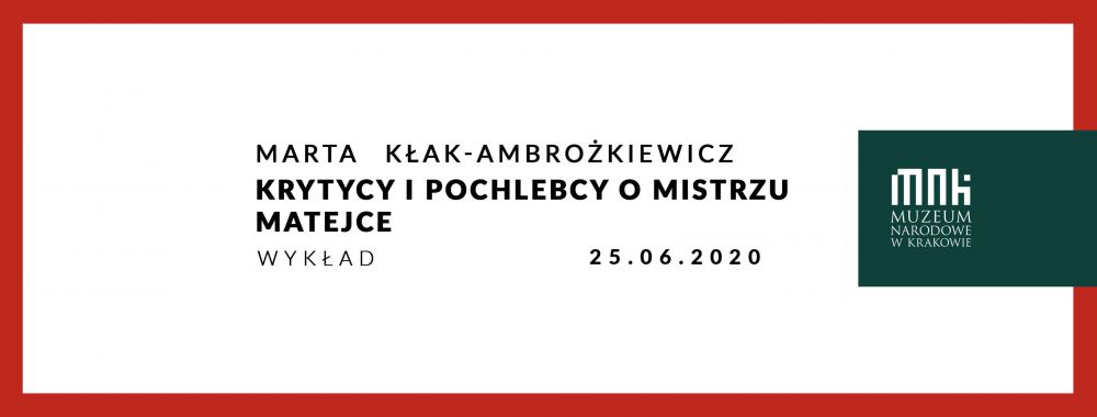 Prowadzenie: Marta Kłak-Ambrożkiewicz kustosz, Muzeum Dom Jana Matejki MNK, autorka publikacji i wystaw o Janie Matejce.