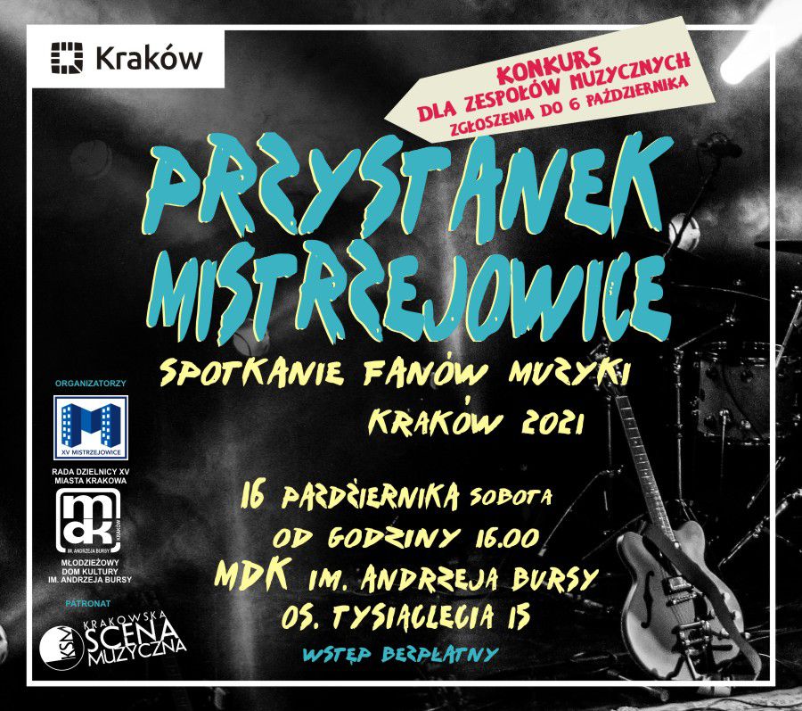 Przeglšd muzyczny /o charakterze konkursu/ od poezji piewanej po heavy metal, realizowany przez Młodzieżowy Dom Kultury im. Andrzeja Bursy z inicjatywy Rady Dzielnicy XV Miasta Krakowa MISTRZEJOWICE.