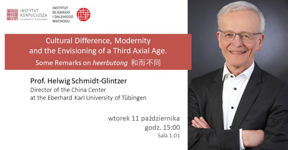 Instytut Konfucjusza w Krakowie serdecznie zaprasza we wtorek 11 października o godz. 15:00 na wykład prof. Helwiga Schmidt-Glintzera "Cultural Difference, Modernity and the Envisioning of a Third Axial Age Some Remarks on he er bu tong 和而不同".