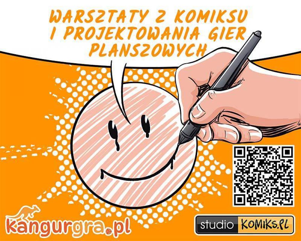 Na warsztatach z komiksu i tworzenia gier będziemy z dziećmi kreować własnego bohatera do komiksu i uczyć się rysunku. Napiszemy scenariusz do komiksu i gry planszowej. Będziemy wymyślać historię, którą w ciekawy i atrakcyjny dla odbiorcy sposób opowiemy za pomocą komiksu z własnym bohaterem oraz gry planszowej z ciekawą mechaniką. Będzie to świetna kreatywna zabawa i bardzo twórczo spędzony czas dla wszystkich uczestników warsztatów komiksowych – dzieci, młodzieży, dorosłych.