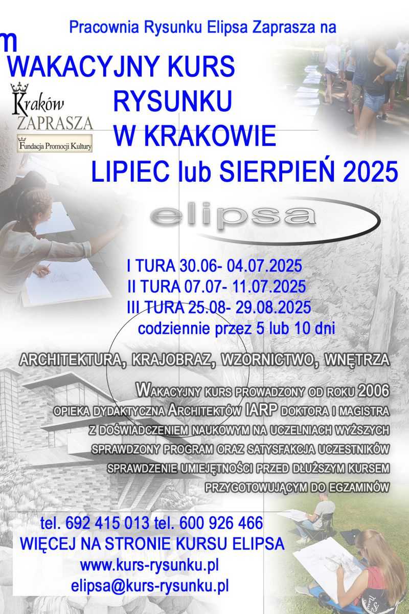 Zapraszamy osoby zainteresowane kandydowaniem na studia lub sprawdzeniem się w meandrach rysunku odręcznego w trakcie kursu wakacyjnego w lipcu lub w sierpniu. Zajęcia pozwalają nie tylko poznać arkana tej pięknej sztuki w zakresie architektury i projektowania oraz również zwiedzić Kraków i ciekawe miejsca w mieście. W trakcie zajęć planujemy plenery m.in. w Parku Jordana, na Wawelu, Plantach, Ogrodzie Botanicznym oraz lokalizacjach Starego Miasta .