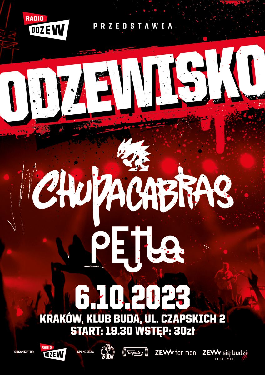 Pierwsza edycja ODZEWISKA rozpocznie się już 6 października 2023 roku o godzinie 19:30 w klubie Buda, mieszczącym się przy ul. Czapskich 2 w Krakowie. Na premierowym wydarzeniu zagrają dwa krakowskie zespoły: Chupacabras i Pętla.