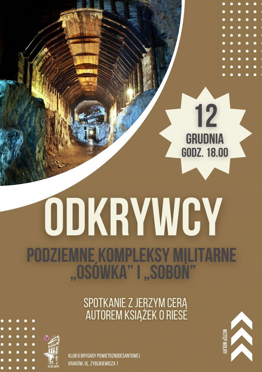 Spotkanie odbędzie się 12 grudnia 2023, o godz. 18.00 w Sali Widowiskowej Klubu 6 Brygady Powietrznodesantowej, Kraków, ul. Zyblikiewicza 1.