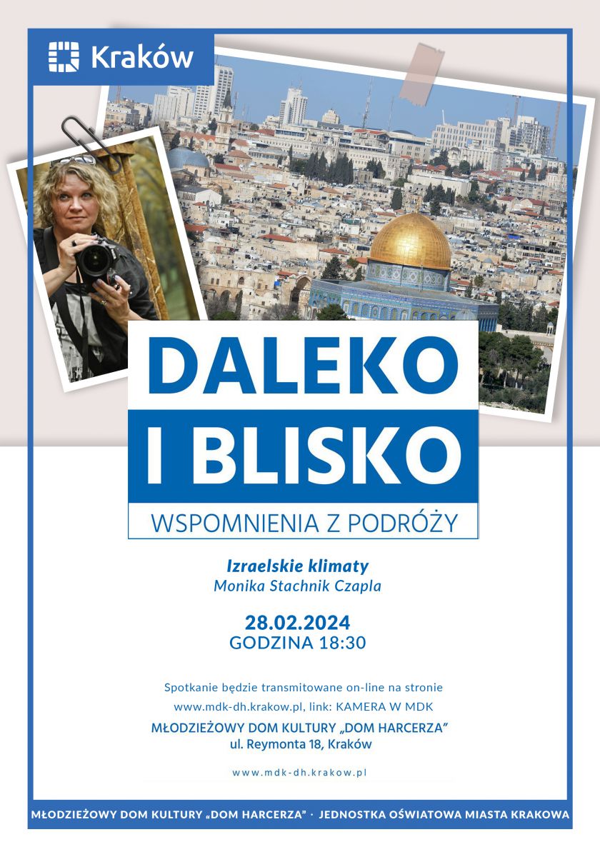 Cykl „Daleko i blisko” to niezwykłe spotkania z podróżnikami, fotografami, osobami ciekawymi świata i ludzi. Zapraszamy osoby, które chcą podzielić się swoimi wspomnieniami z podróży. Tym razem naszym przewodnikiem będzie Monika Stachnik-Czapla.