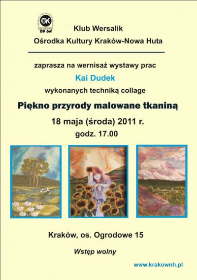 Klub Wersalik Orodka Kultury Krakw-Nowa Huta zaprasza na wernisa wystawy prac Kai Dudek wykonanych metod collage.