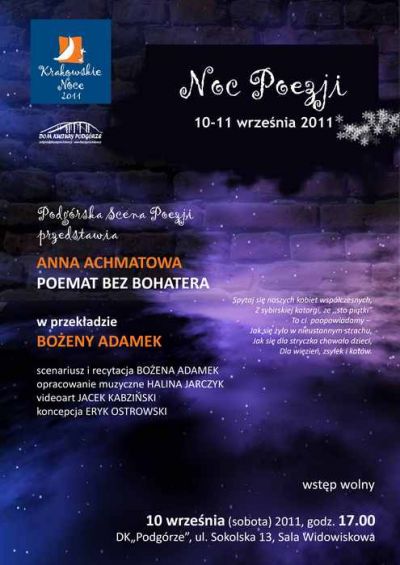 W ramach festiwalu Krakowska Noc Poezji 2011 w cyklu