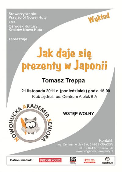 Nowohucka Akademia Seniora zaprasza na wykład powięcony wybranemu aspektowi kultury Japonii, a mianowicie sposobom pakowania i przekazywania prezentów.