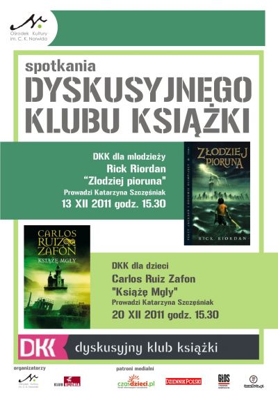 Zapraszamy do Klubu Kunia Orodka Kultury im. C. K. Norwida,na spotkanie otwarte dla osób młodych, które lubiš czytać i rozmawiać o ksišżkach.